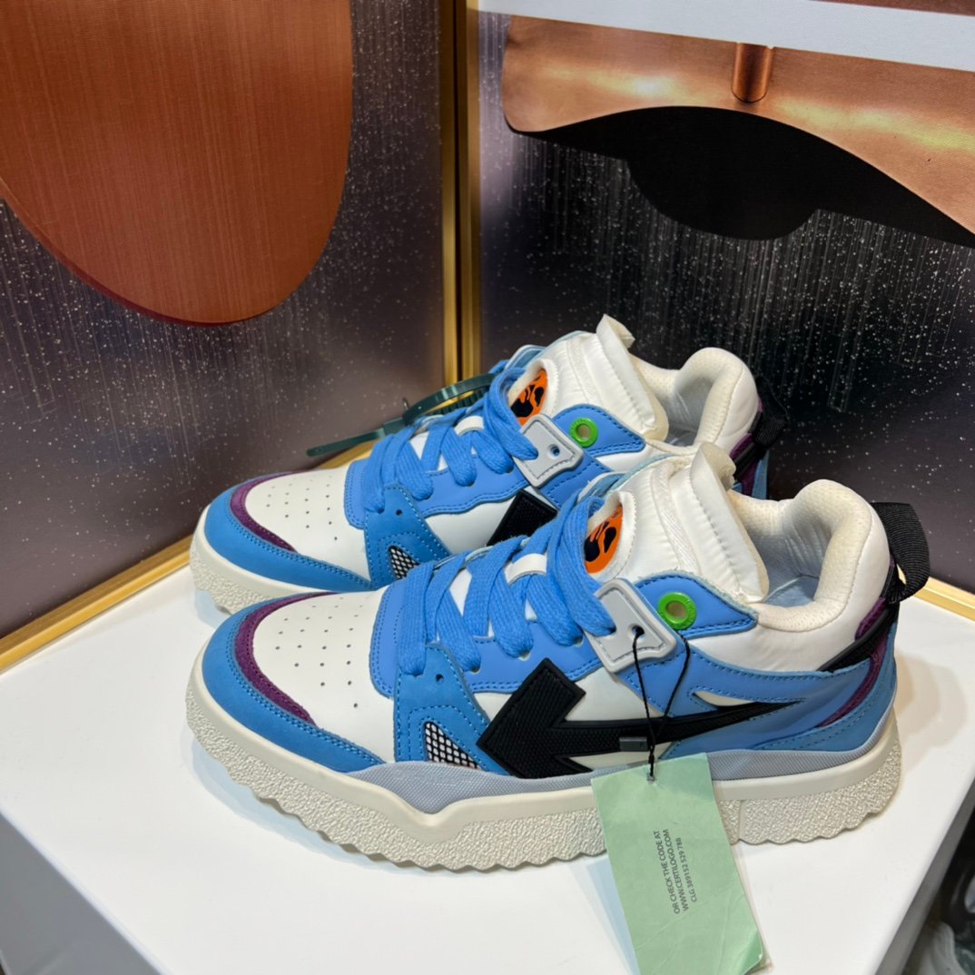 أوف وايت ليست مجرد علامة تجارية، بل هي تجسيد للابتكار في عالم الأحذية الرياضية. ويتميز "حذاء سنيكر أبيض وأزرق" بالمواصفات التالية: