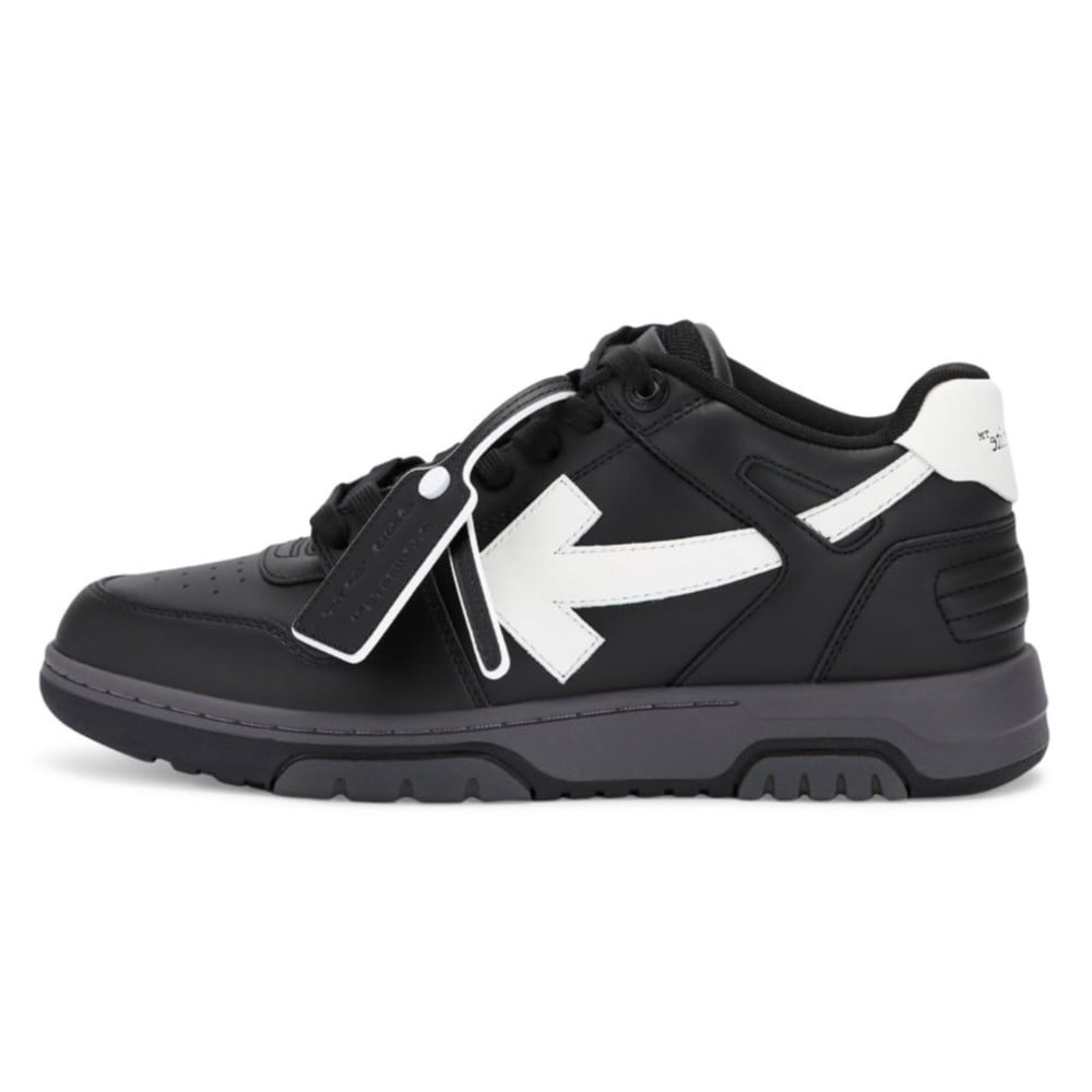 - يُزين سنيكر اوف وايت اسود ابيض شعار اوف وايت المميز على الجانب، مما يضفي عليه لمسة من الفخامة والتميز. كما يتميز الحذاء بسهم أبيض على الجانب، وهو رمز مميز لعلامة اوف وايت يُضفي عليه لمسة من الجرأة والعصرية.