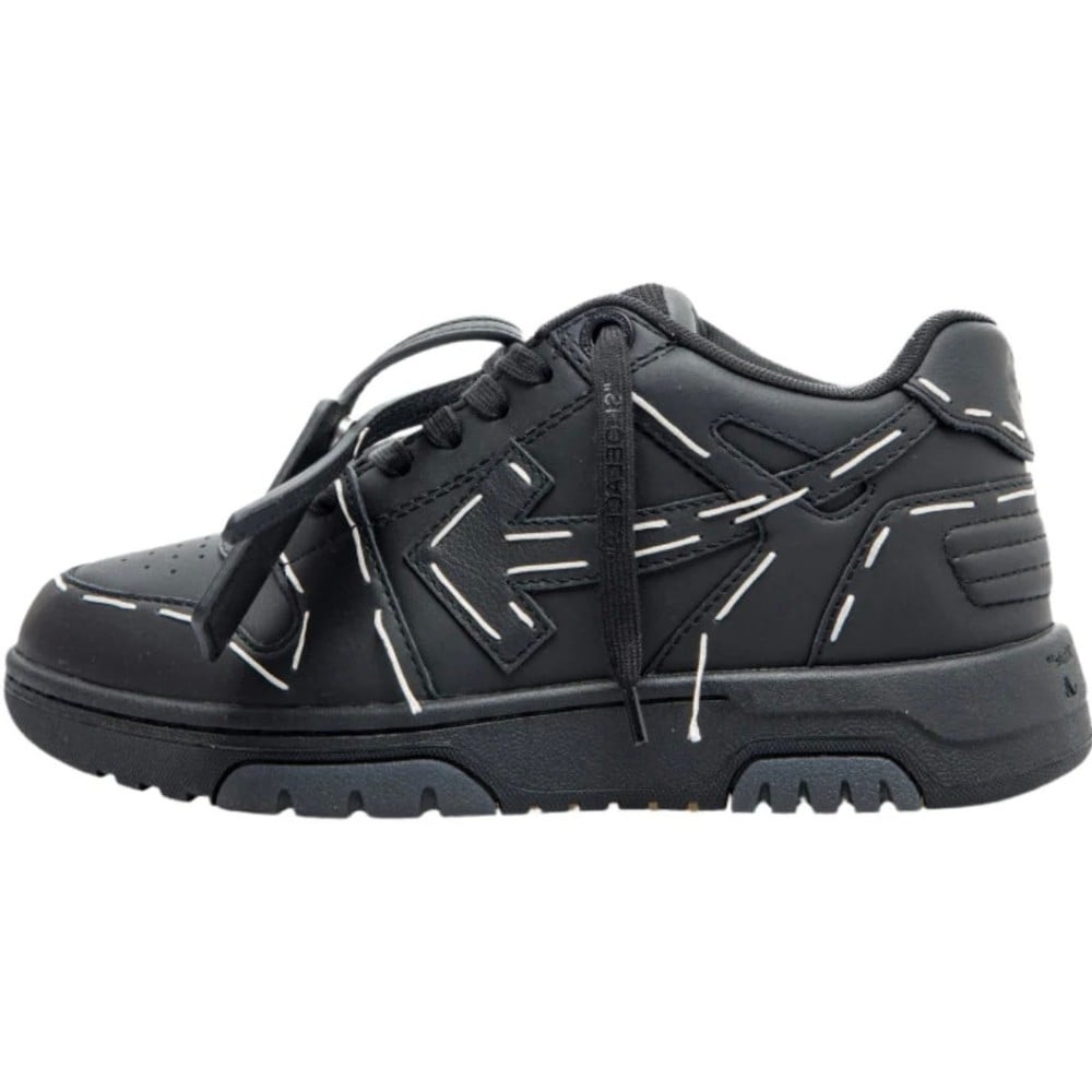 - يتميز حذاء أوف وايت الأسود بخطوط بيضاء بتصميمه البسيط والأنيق في نفس الوقت، حيث يتكون من جسم أسود مصنوع من الجلد الطبيعي عالي الجودة يضفي عليه لمسة فاخرة.