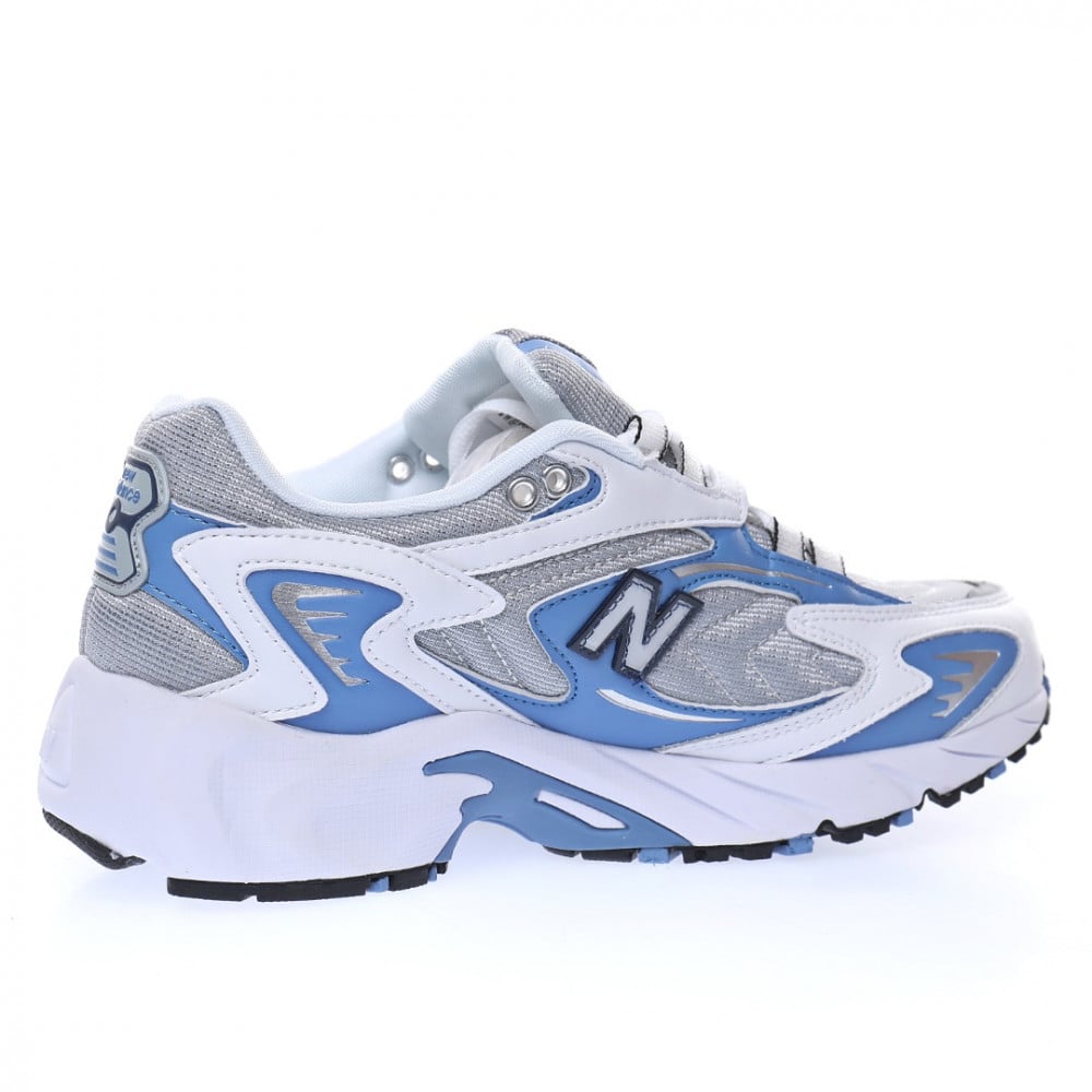 - تصميم أنيق:يتميز حذاء نيو بالانس 725 بتصميمه الأنيق المستوحى من تصاميم الجري في عام 2000. يأتي الحذاء بلونين أبيض وأزرق، مما يجعله مناسبًا لمجموعة متنوعة من الملابس.