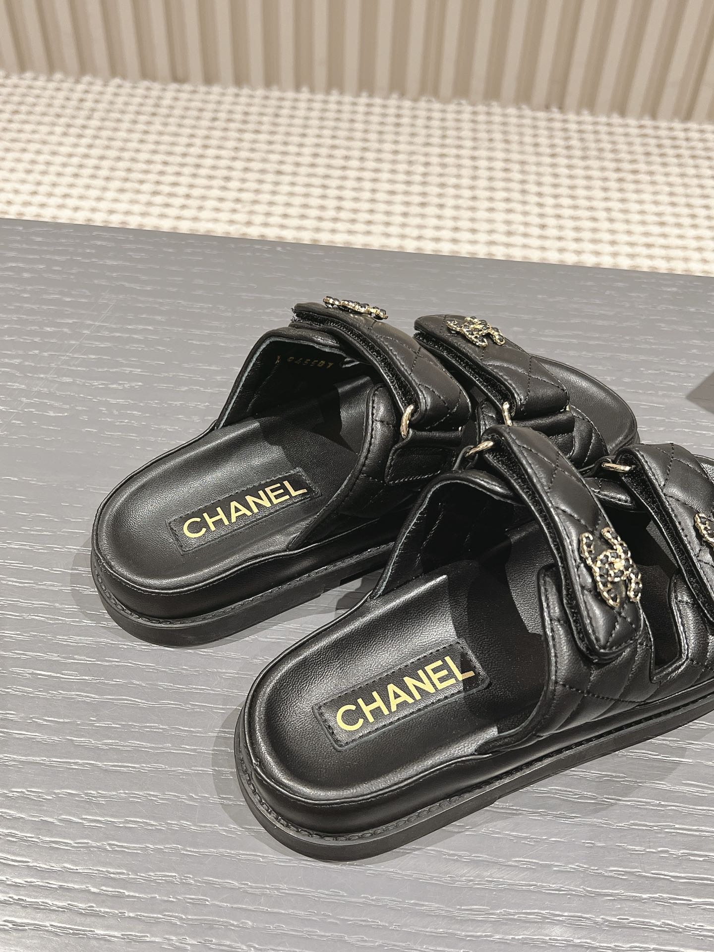 - الجودة العالية: مصنوع من أرقى أنواع الجلود، يوفر شانيل صندل الأسود تجربة فريدة من الراحة والمتانة. الجلد الأسود المصقول يعكس ذوقًا رفيعًا ويضمن مظهرًا جذابًا يدوم طويلًا.
