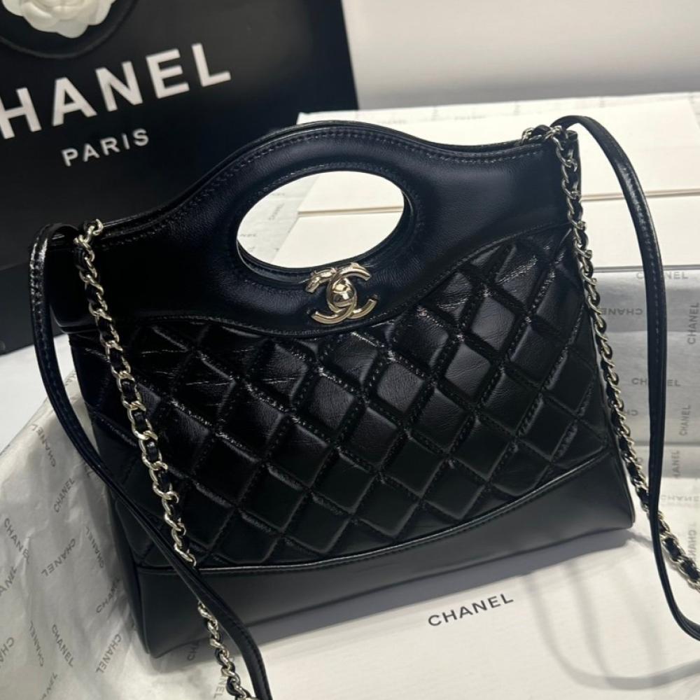 شنطة تشانيل اسود بتصميم المقبض الدائري