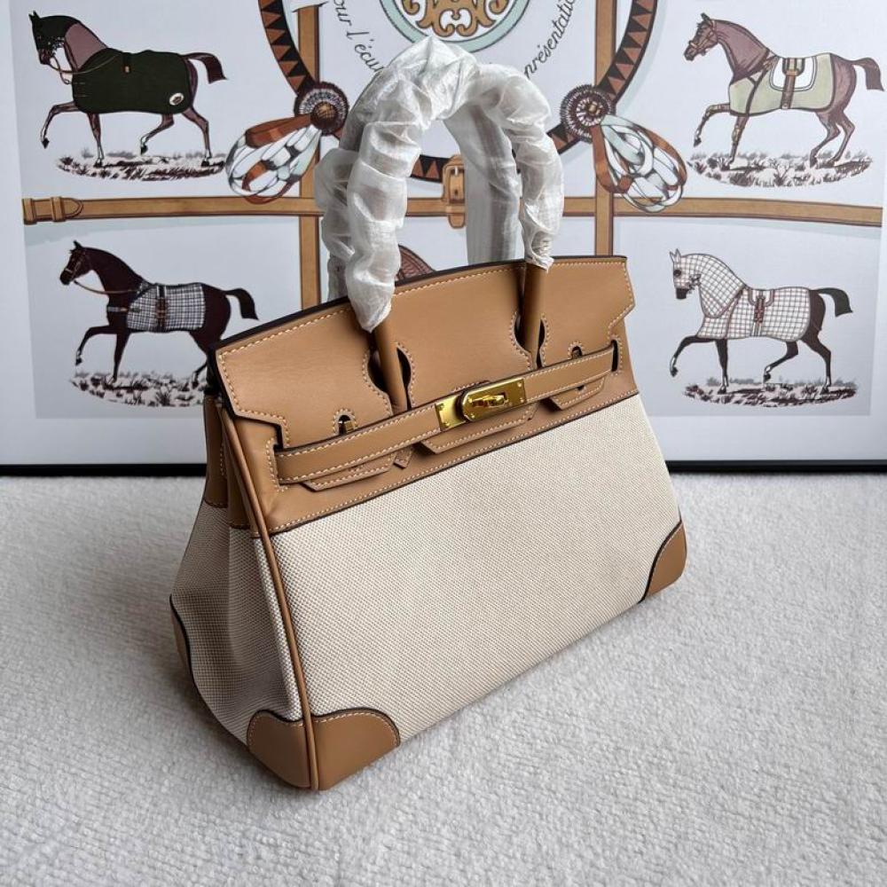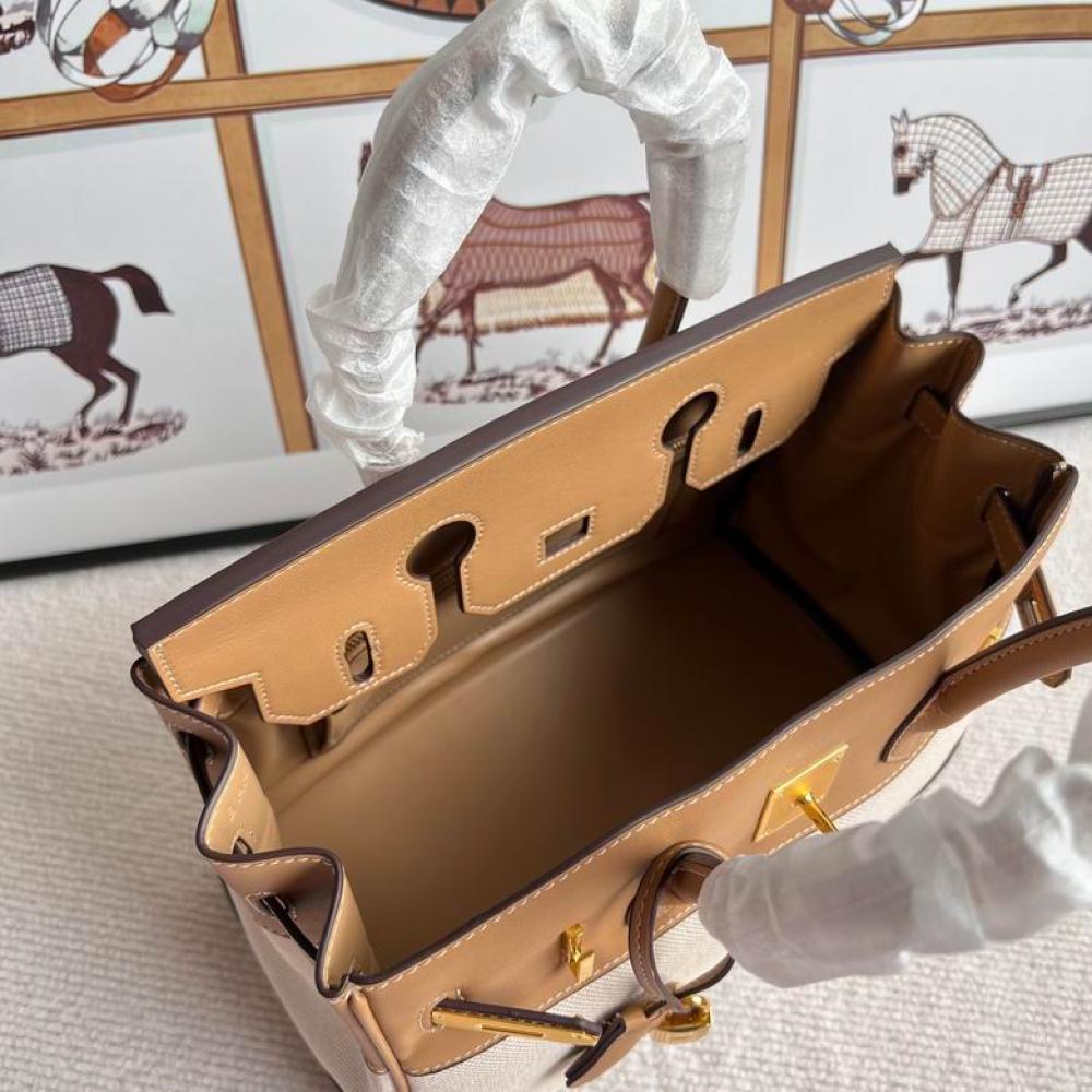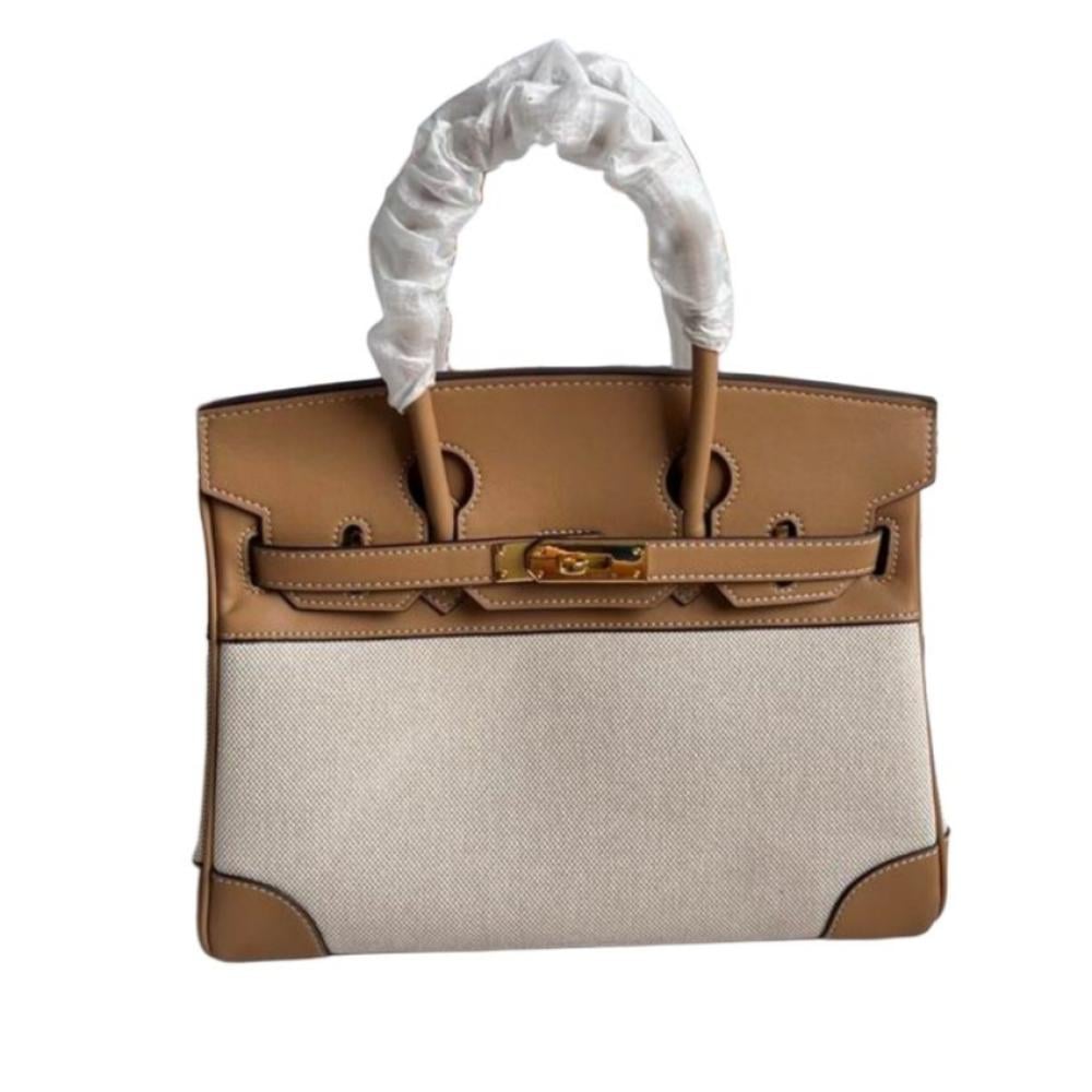 شنطة ايرميز بني أناقة كلاسيكية بلمسة عصرية من القماش والجلد