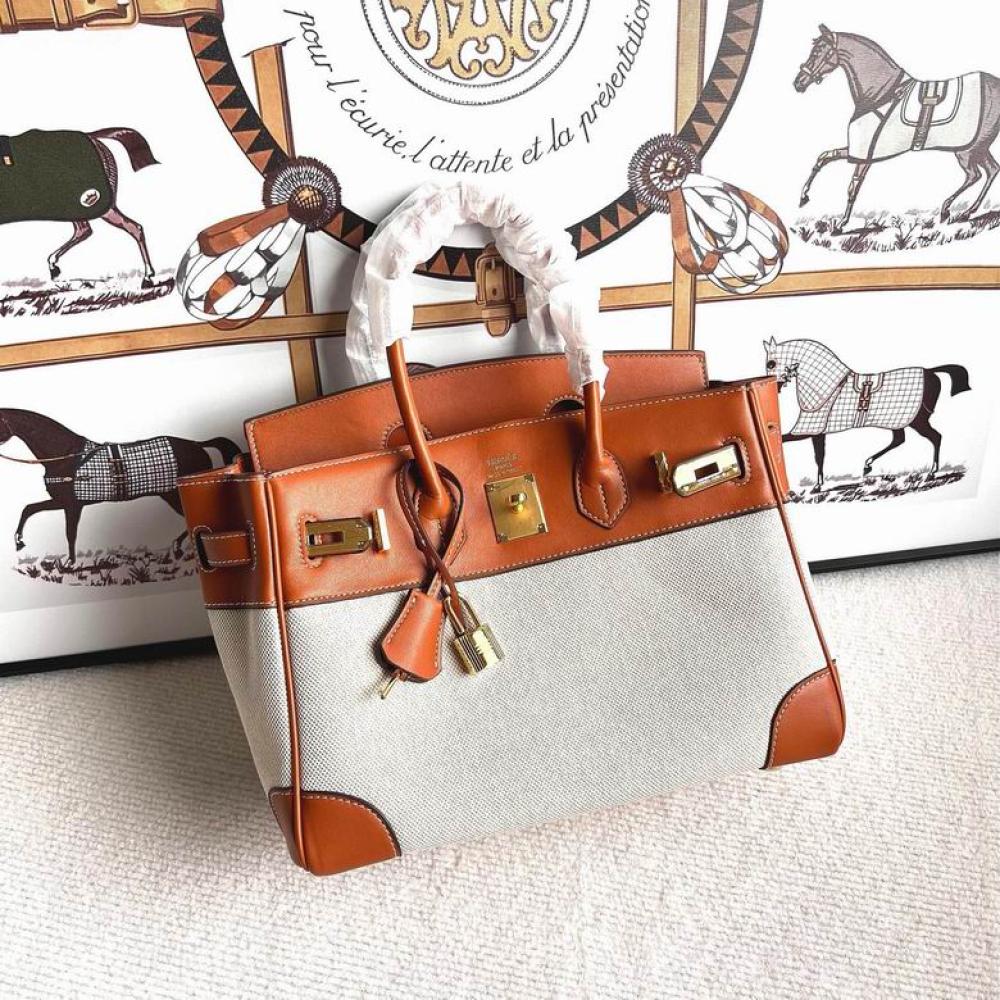 شنطة ايرميز بني وبيج لوحة فنية من الالوان الطبيعية بين يديك