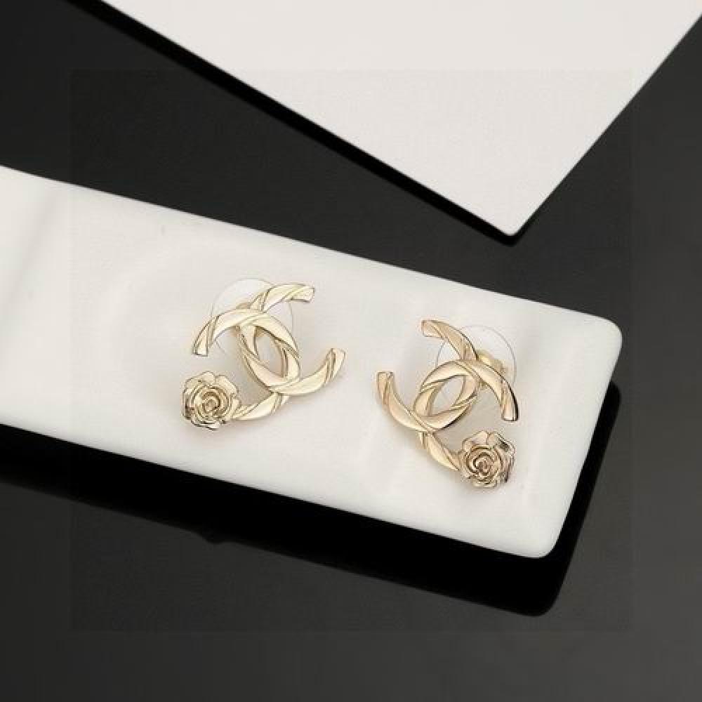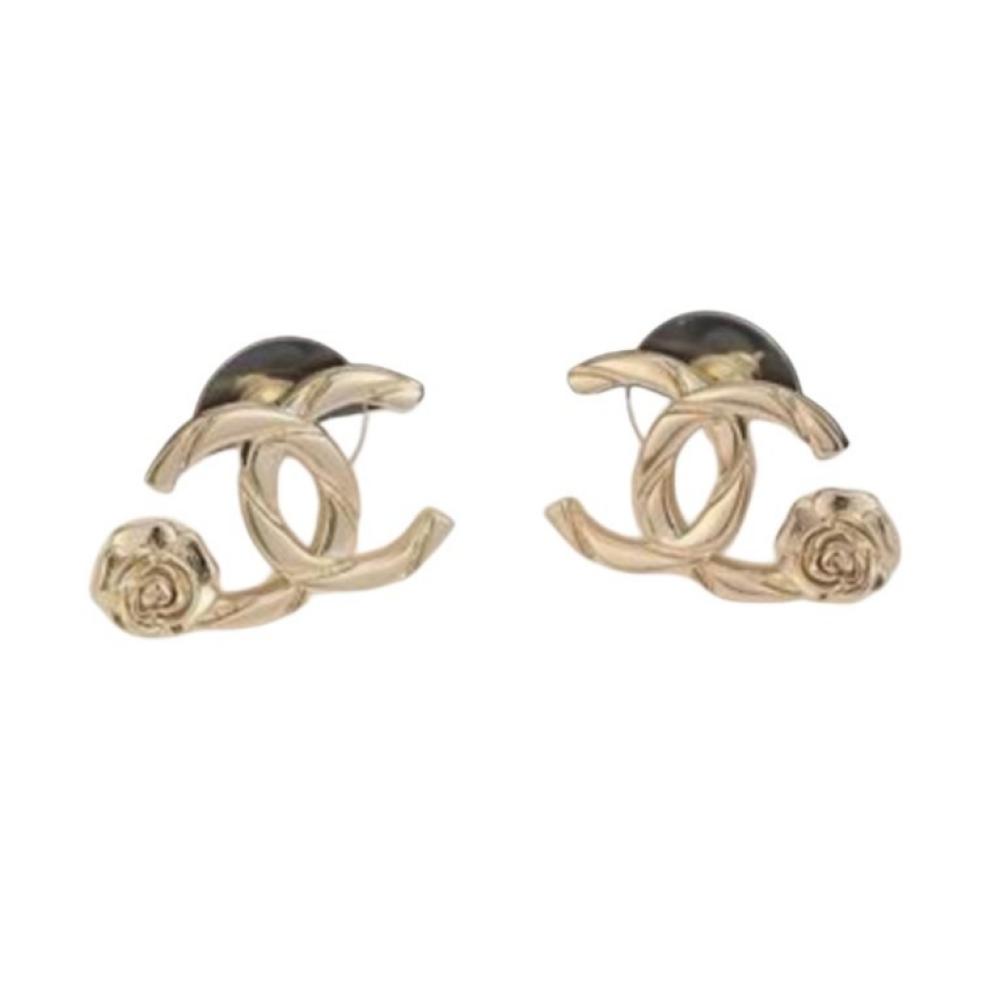اقراط تشانيل سحر الذهب وشعار CC مع لمسة الزهور الرومانسية