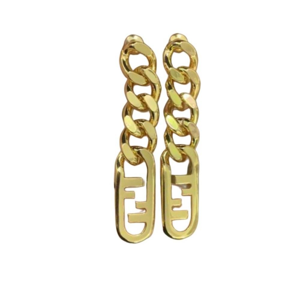 تأتي أقراطفيندي بتوليفة خلاقة تجمع بين سلاسل ذهبية مترابطة وشعار FF المزدوج المصقول بدقة.