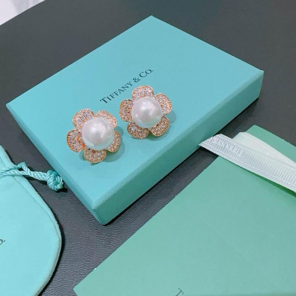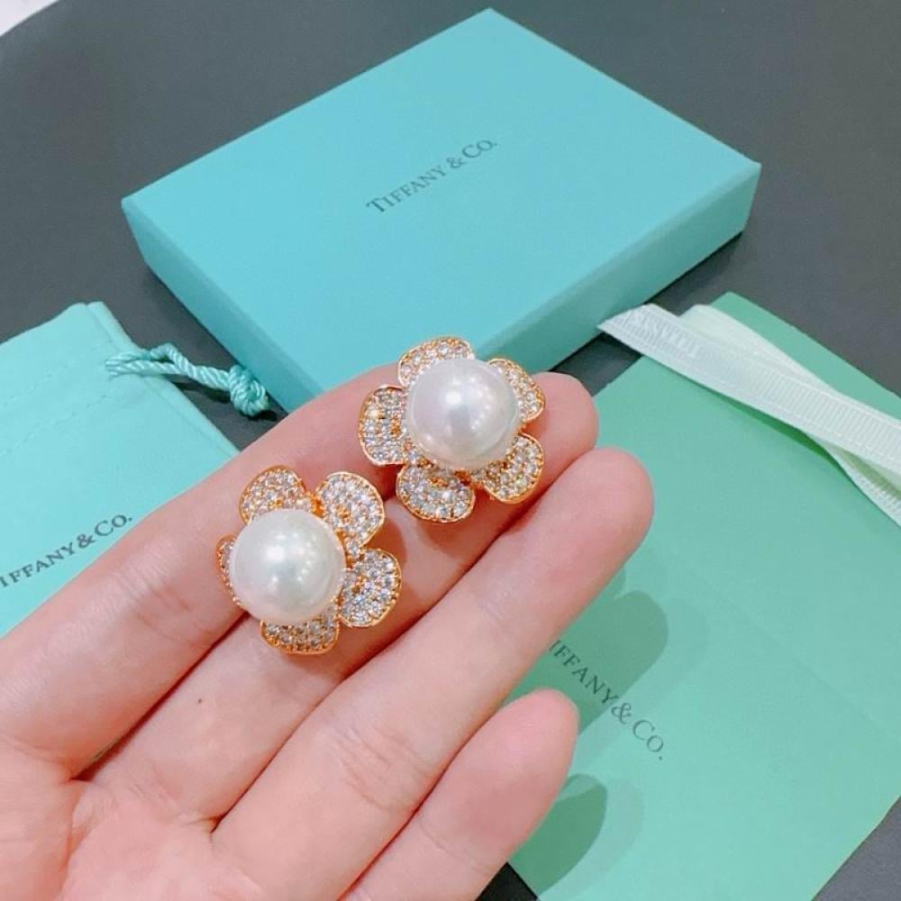 أقراط تيفاني جمال الذهب واللؤلؤ في تصميم وردي ساحر