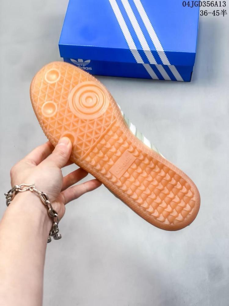 يتميز حذاء أديداس سامبا P.D بجزء علوي مصنوع من الجلد الطبيعي عالي الجودة، مما يضمن المتانة والمظهر الأنيق. تضيف التفاصيل الخضراء على الشرائط الجانبية والكعب لمسة من التميز والحيوية. يوفر النعل الوسطي المصنوع منمادة EVA خفيفة الوزن امتصاصًا ممتازًا للصدمات، بينما يضمن النعل الخارجيالمطاطيالقوي الثبات والتحكم على مختلف الأسطح. يأتي الحذاء مع رباط أبيض كلاسيكي ولسان مبطن لضمان الراحة والتثبيت المثالي للقدم.