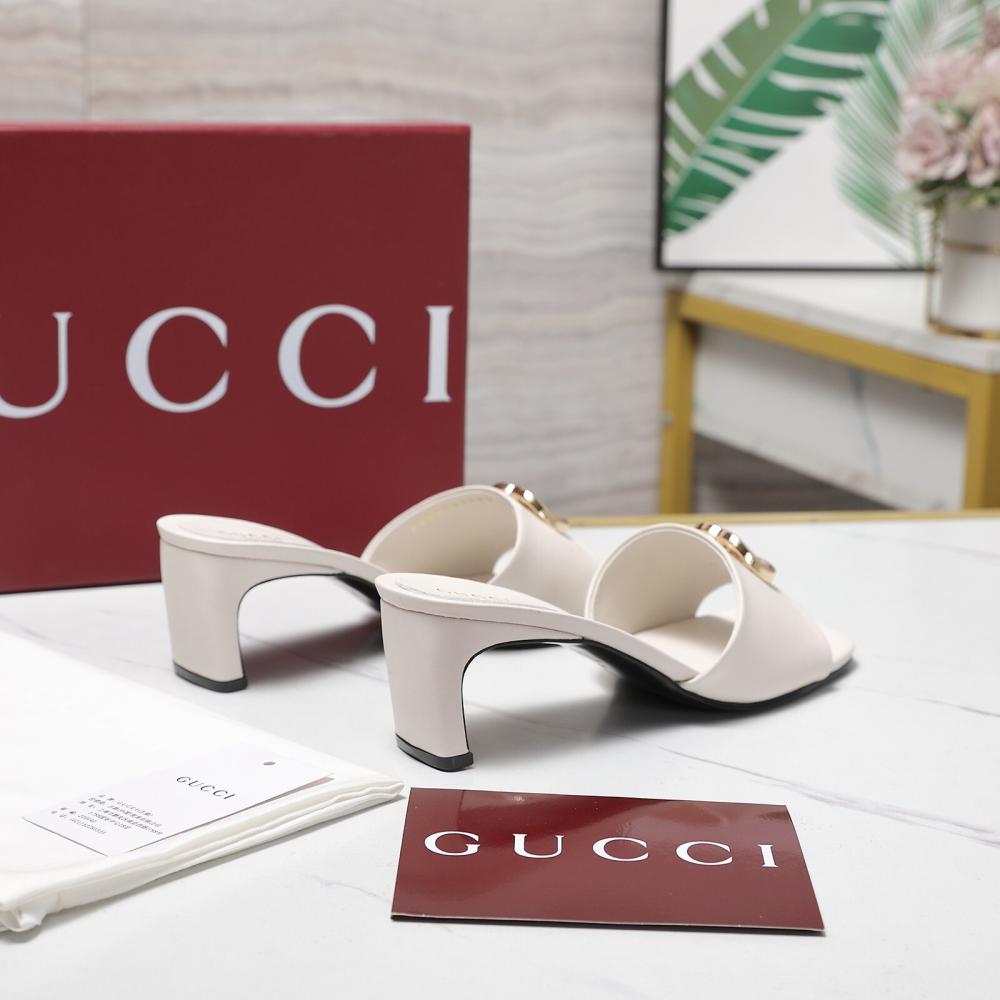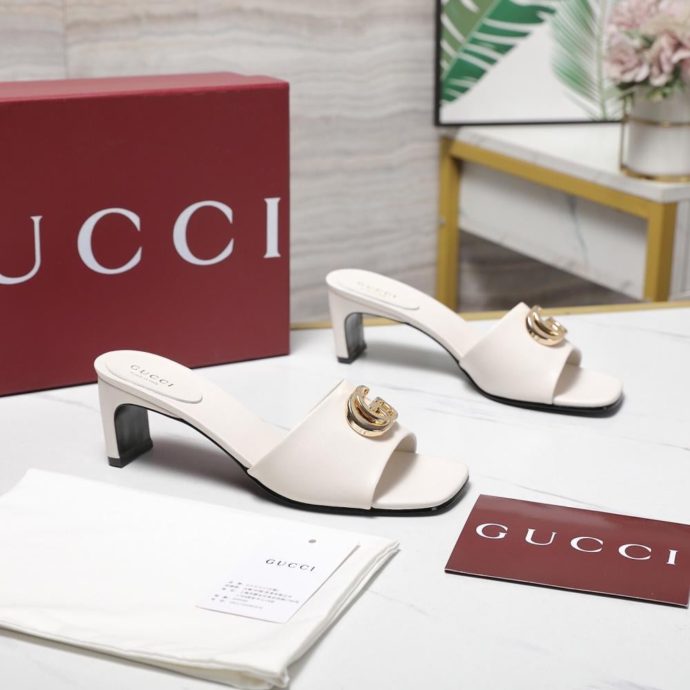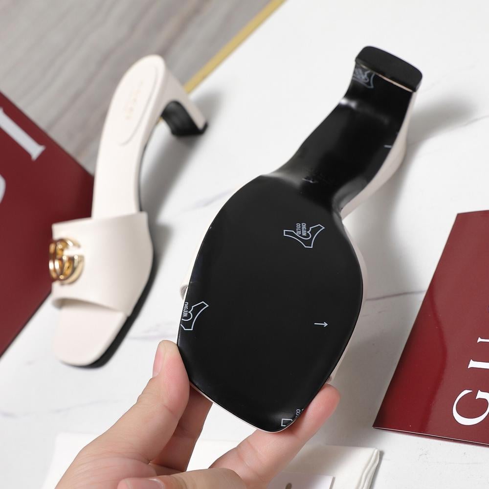 قوتشي صندل كعب أبيض أنيق
