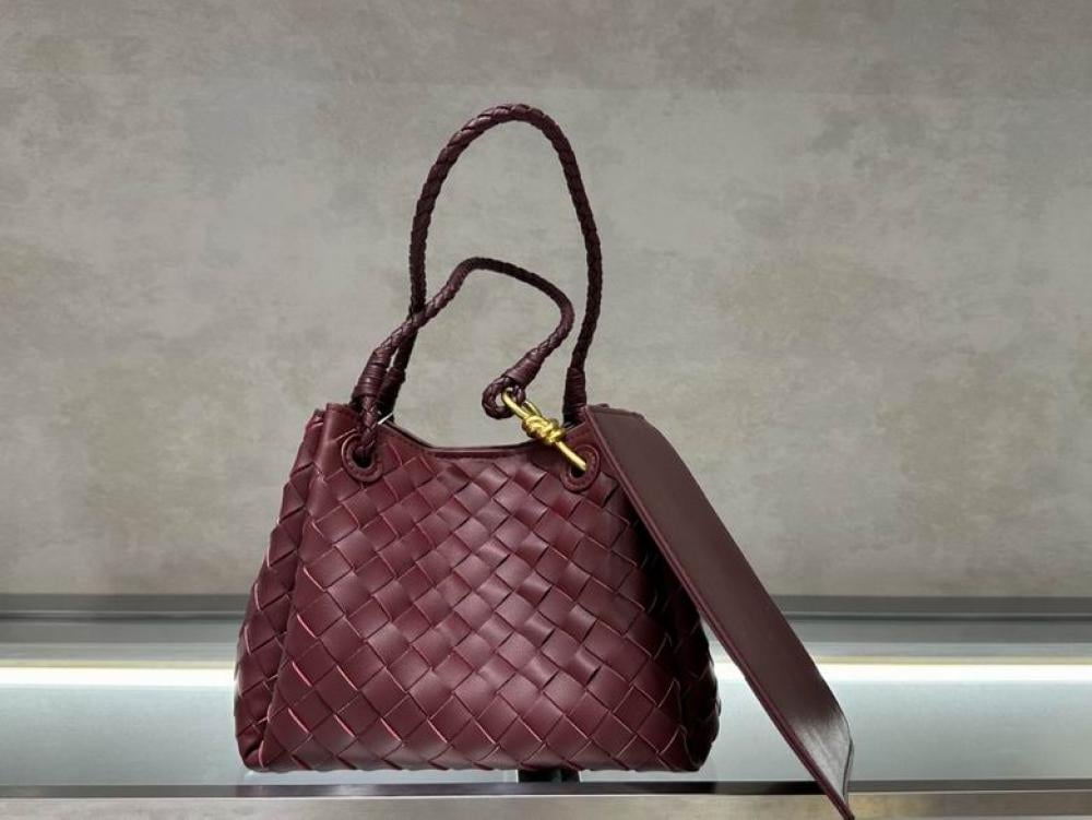تألقي بإطلالة آسرة مع هذه الشنطة الراقية من بوتيغا فينيتا، المصنوعة ببراعة من جلد عالي الجودة بلون عنابي جذاب