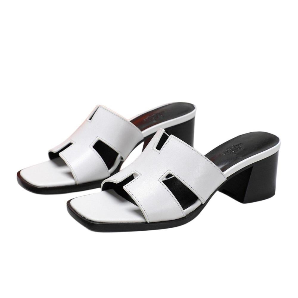 صندل Hermès الأبيض بكعبه الصغير هو انعكاس لذوقك، لثقتك، ولرغبتك في أن تكوني مختلفة دون أن تبوحي بذلك.