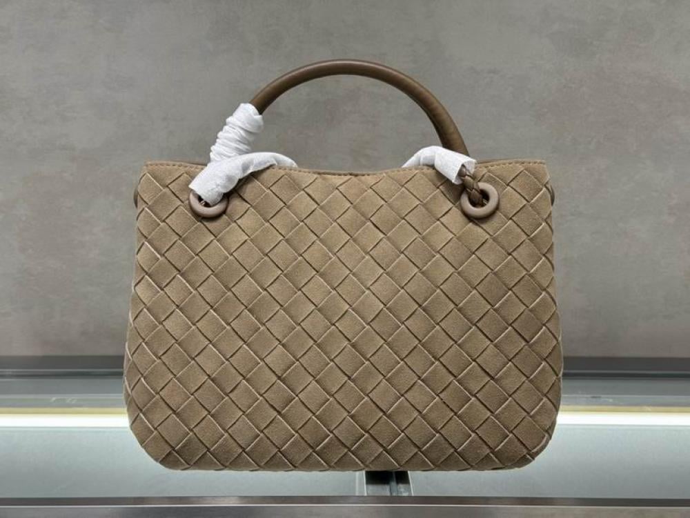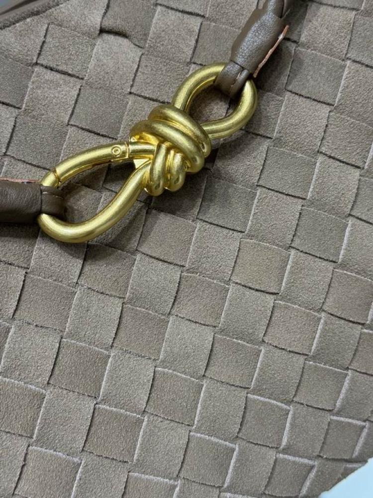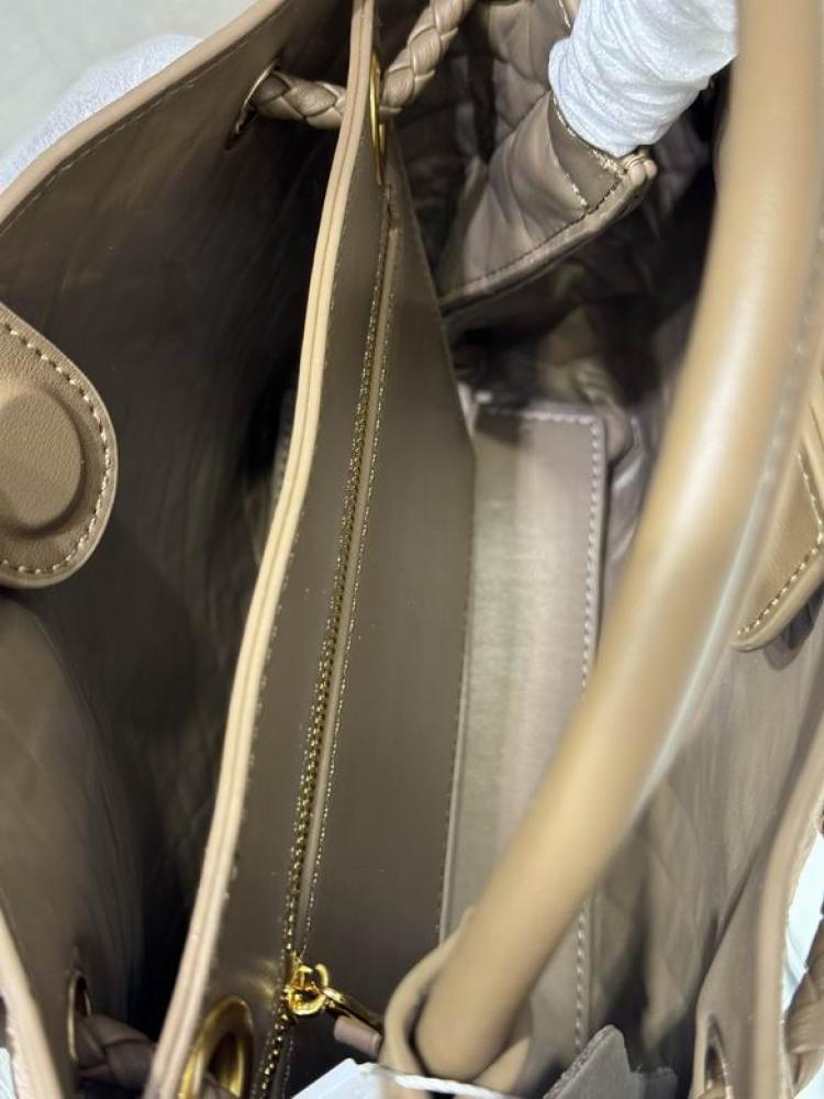 صنعت هذه الحقيبة بوتيقا بلون البني الفاتح من أجود أنواع الجلد الطبيعي، حيث تم اعتماد تقنيات نسج متطورة تمنحها مظهرًا متماسكًا وفريدًا.