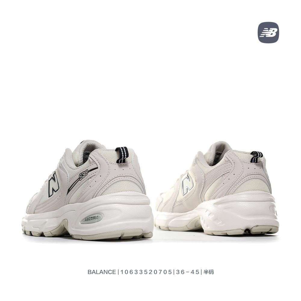 يتميز حذاء "نيو بالانس 530" بلونه البيج البراق الذي يضفي لمسة من الفخامة والتميز على مظهرك. تصميمه الكلاسيكي مع اللمسات العصرية يجعله خيارًا مثاليًا لمختلف الأوقات والمناسبات. سواء كنت تبحث عن الراحة أثناءالجري في الصباح الباكر، أو الأناقة أثناء التنزه في المدينة، فإن "نيو بالانس 530" هو الحذاء الذي يلبي كل توقعاتك.